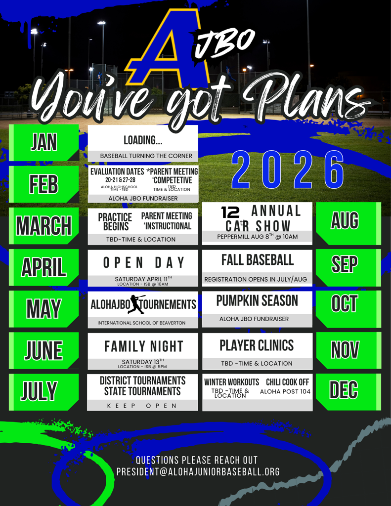 Aloha Junior Baseball Organization (AJBO) is a volunteer-operated non-profit organization.